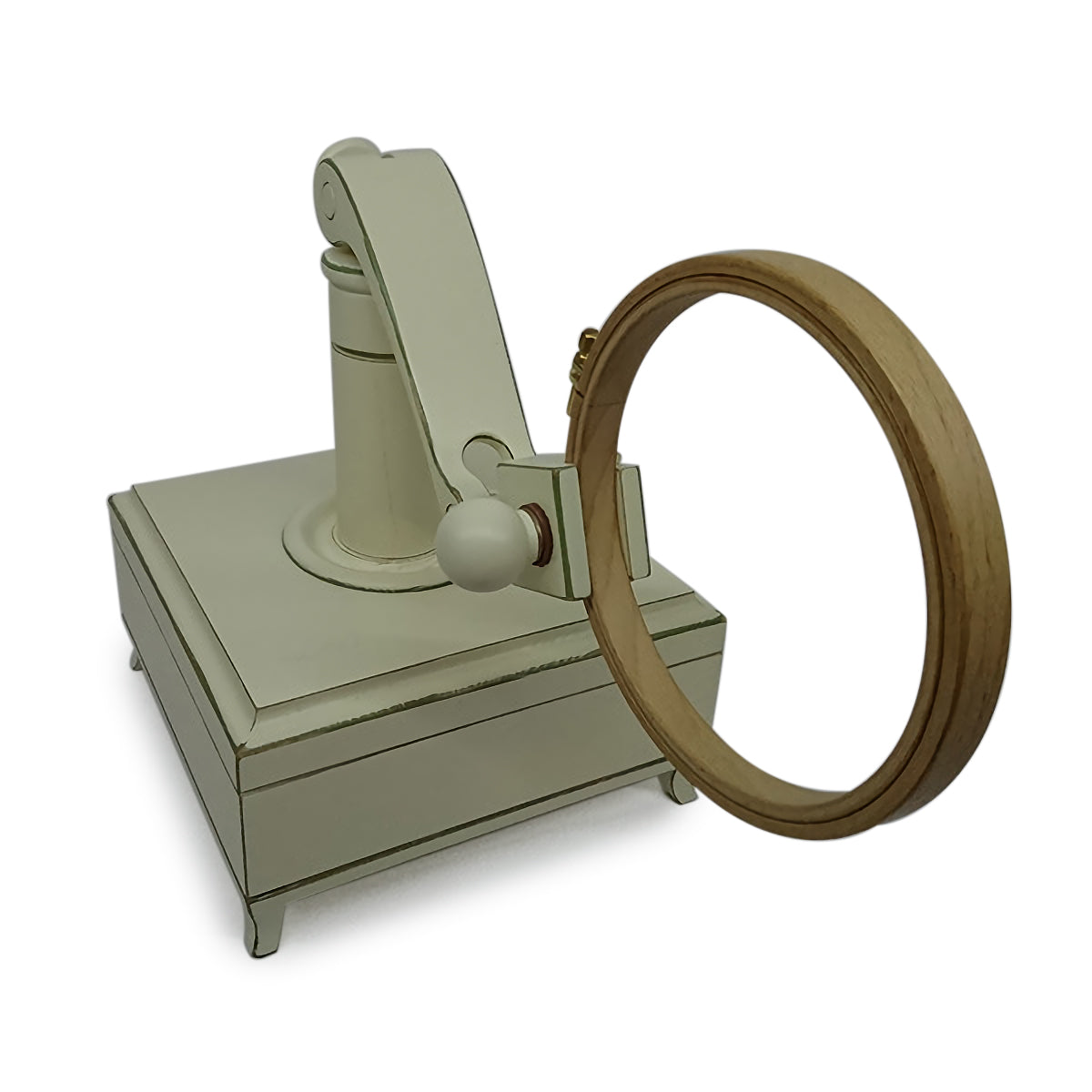 Our Velke Potoky Cross Stitch Stand M1 is specifically designed for embroidery using a hoop. Crafted from solid wood, this stand combines storage and organization for your crafting materials. It offers ample adjustments for ease of use.