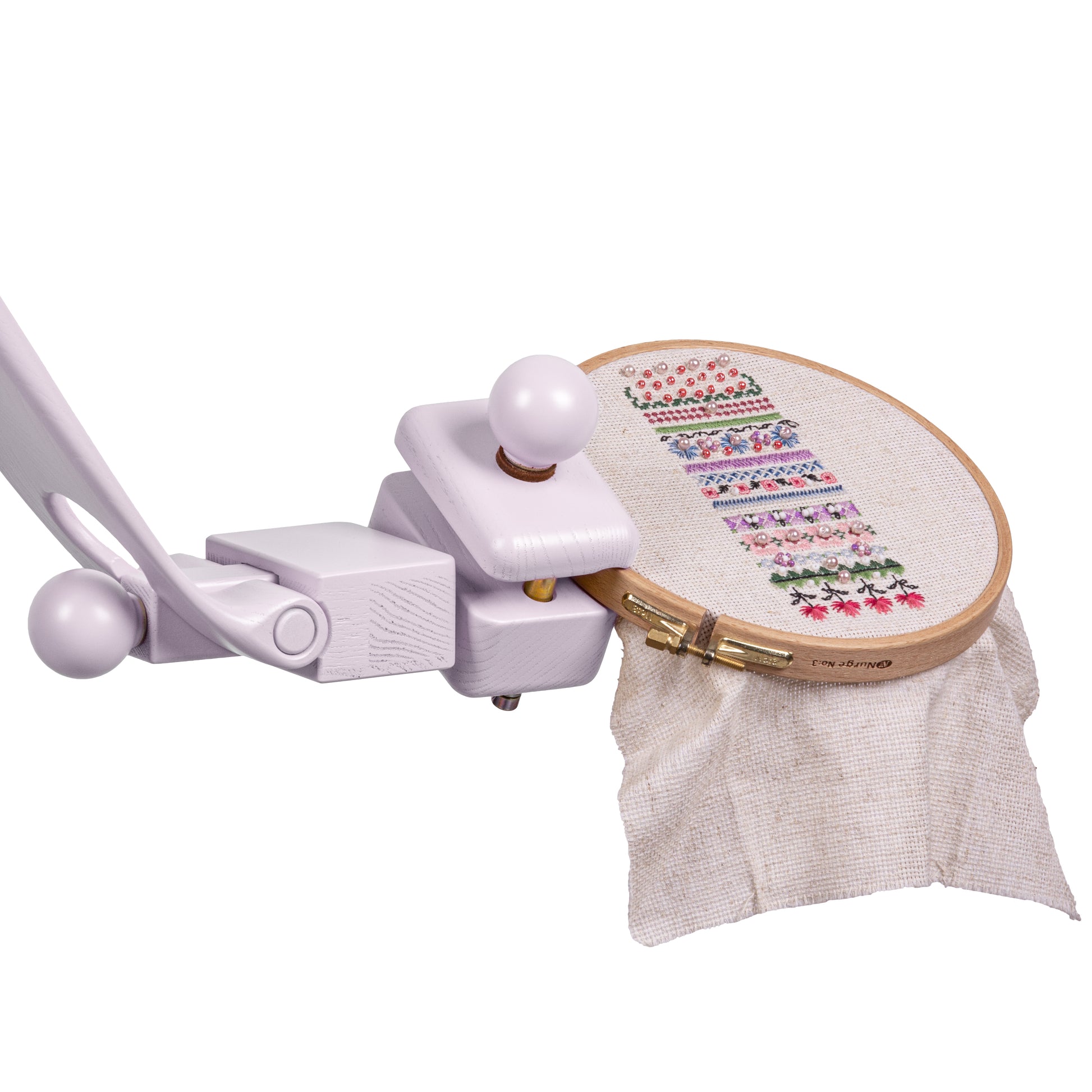 Meet our Cross Stitch Stand M4. Its inviting violet color and matte finish exude charm. This floor stand reliably holds Q-snaps, scroll frames, or hoops, ensuring your comfort during embroidery. Easy access to your project's back is granted by the swivel head.